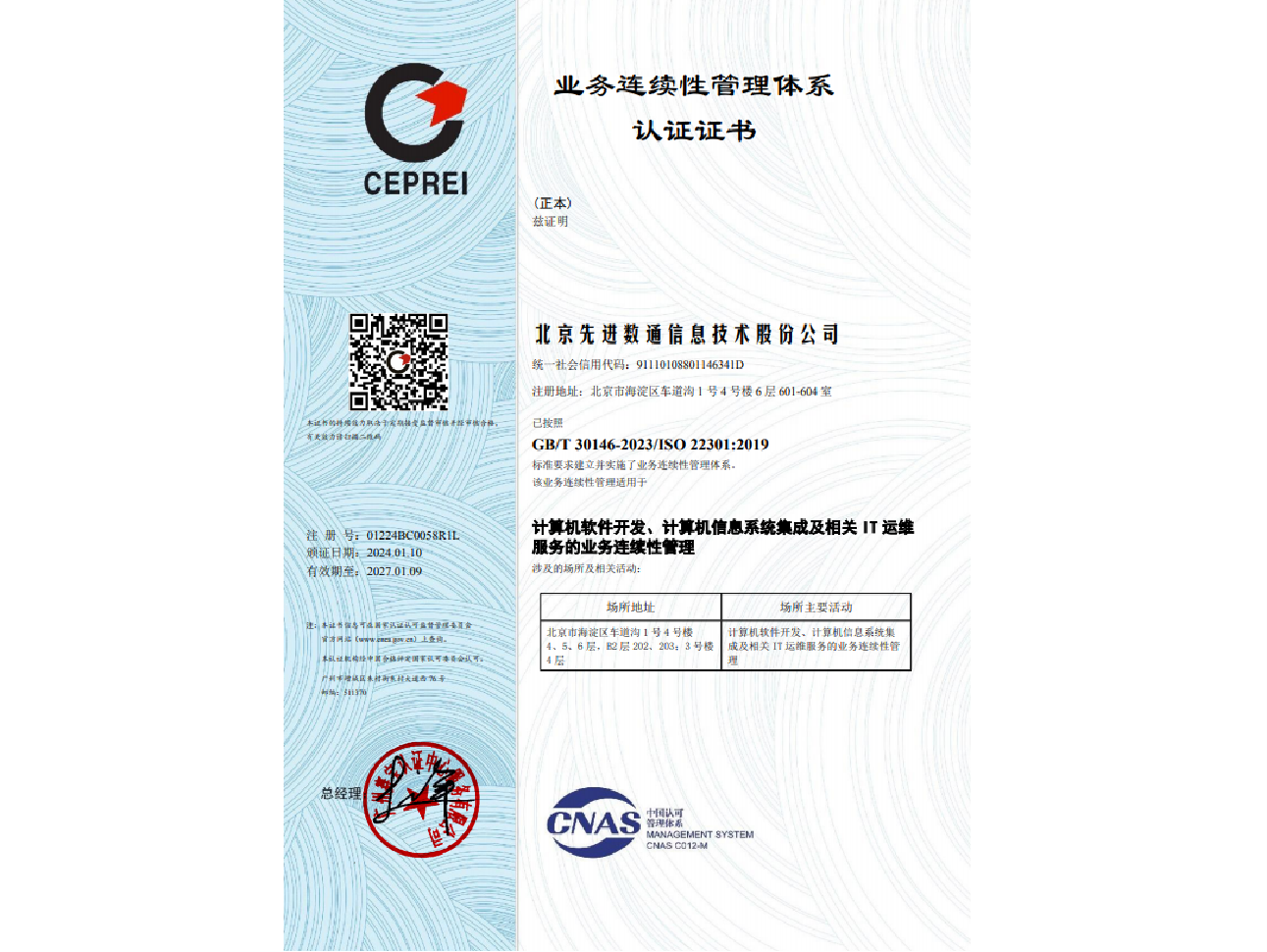 Ebpay先后取得CMMIL5、软件能力成熟度五级(SPCA 5)、信息系统建设和服务能力评估体系(CS)5级、ITSS成熟度一级、信息系统安全集成服务资质二级、信息系统安全运维服务资质二级、国产化信息系统集成和服务能力评估四级(LS4)、北京市企业技术中心等资质认证,并取得ISO9001、ISO20000、ISO27001、ISO14001、ISO45001、ISO22301、ISO37001、ISO28001、GBT29490等标准体系认证,具备行业领先的技术开发、工程实施及服务保障能力。